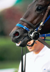 ハミの位置を正しく保ち、頭が上がらない(引っ掛からない)仕組みになっている。